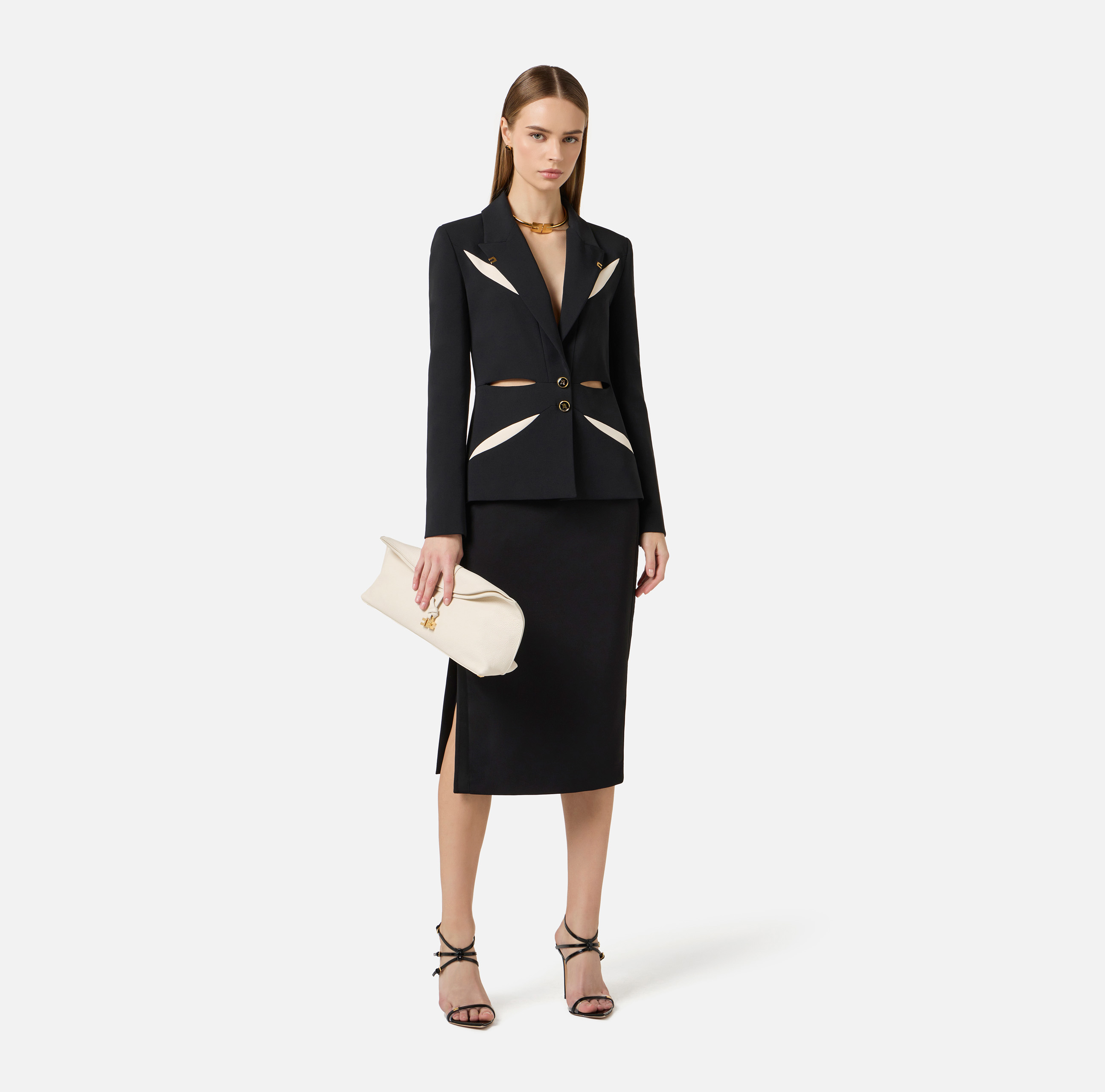 giacca in crêpe leggero con cut-out bicolore