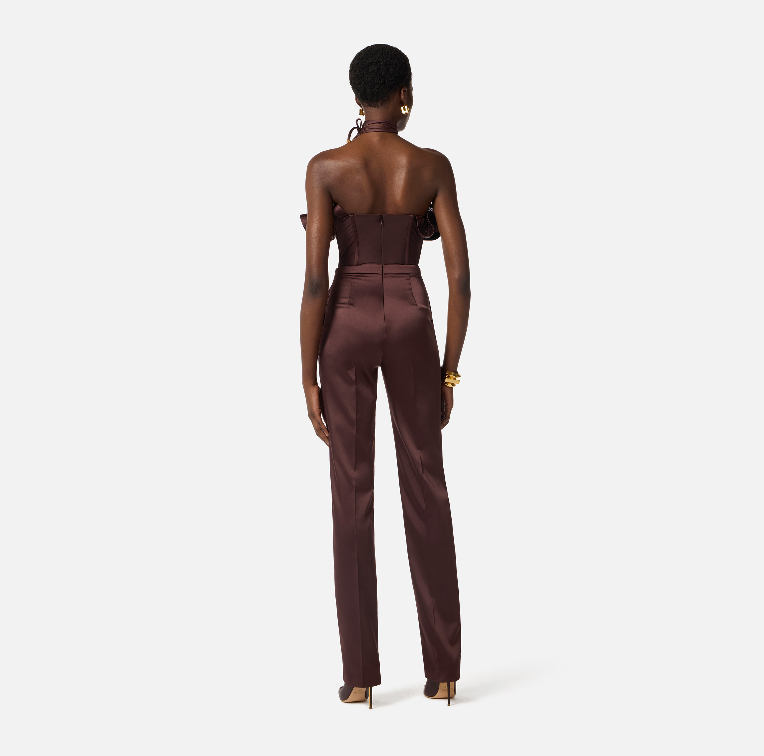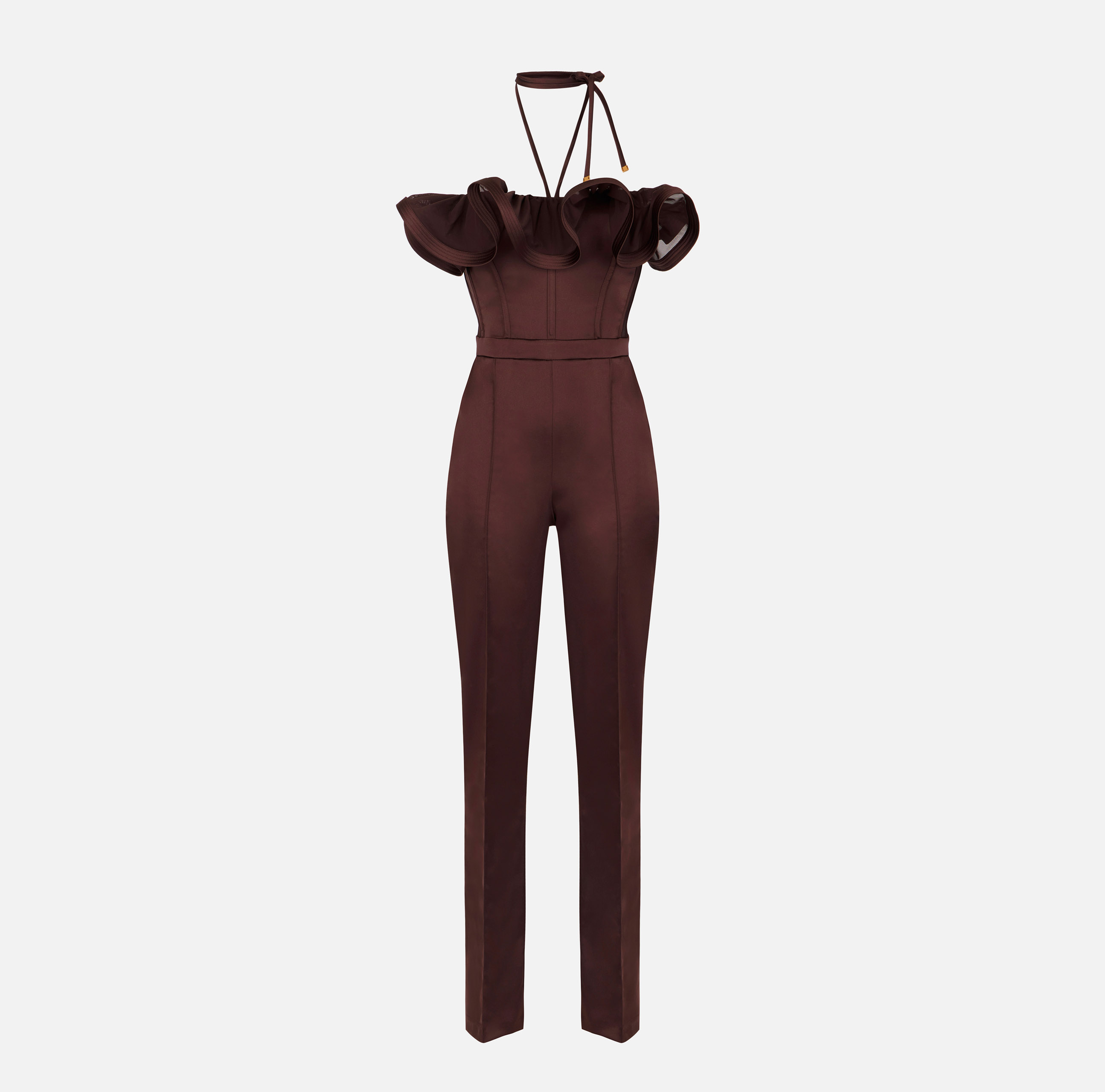 tuta in raso stretch con maxi ruche