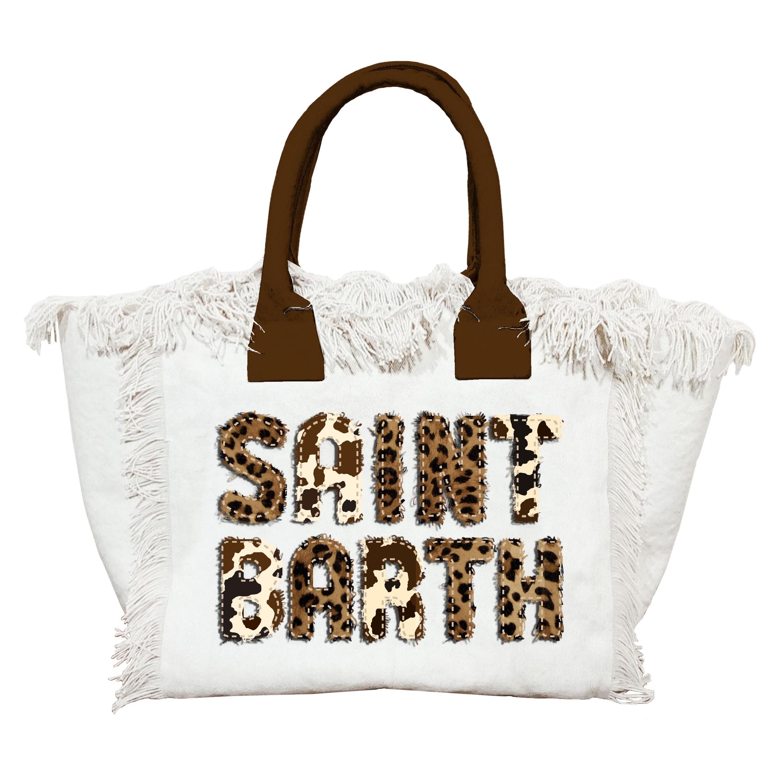 borsa a mano media in canvas logo leopardato