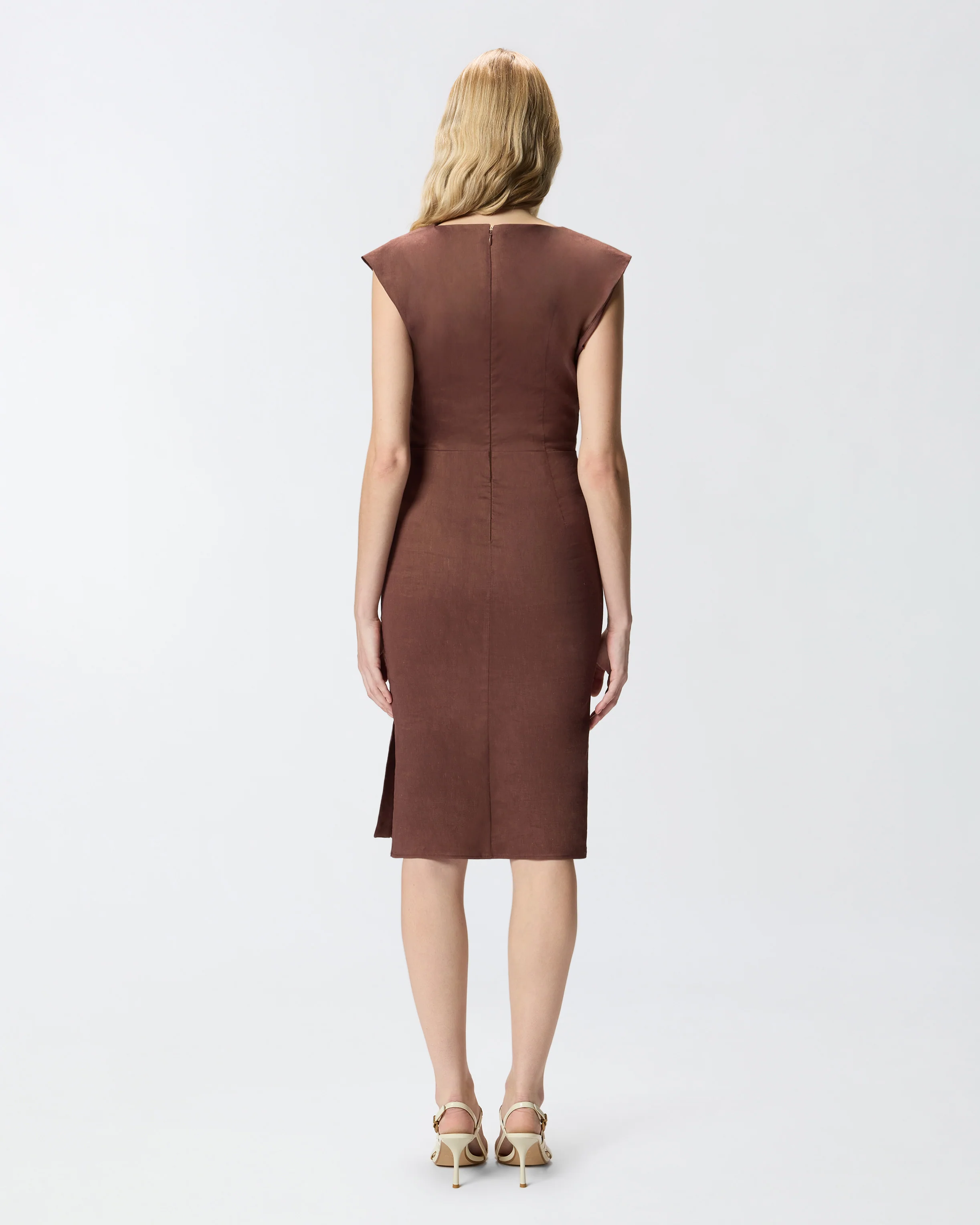 abito longuette aderente in lino