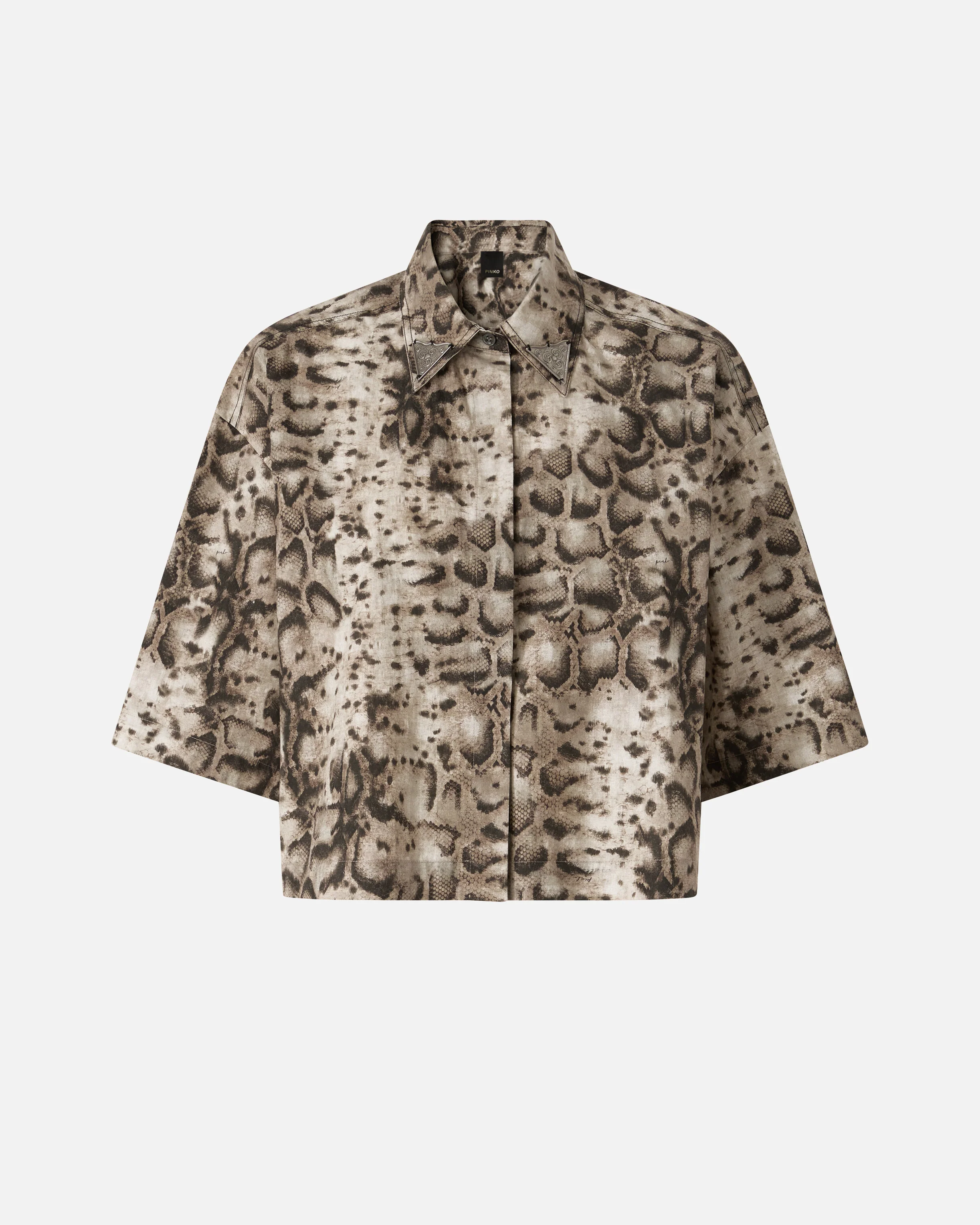 camicia cropped stampata con dettagli metallici