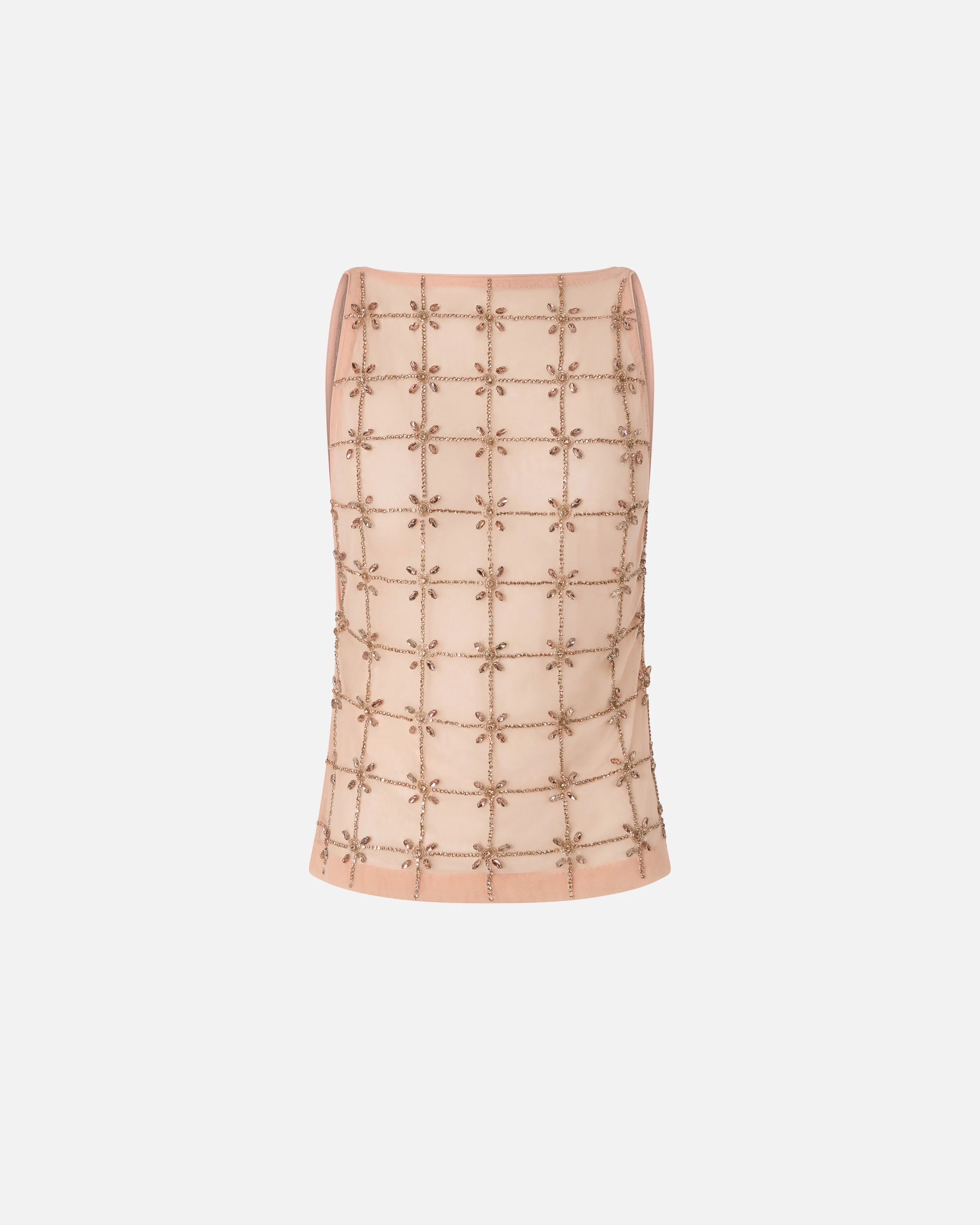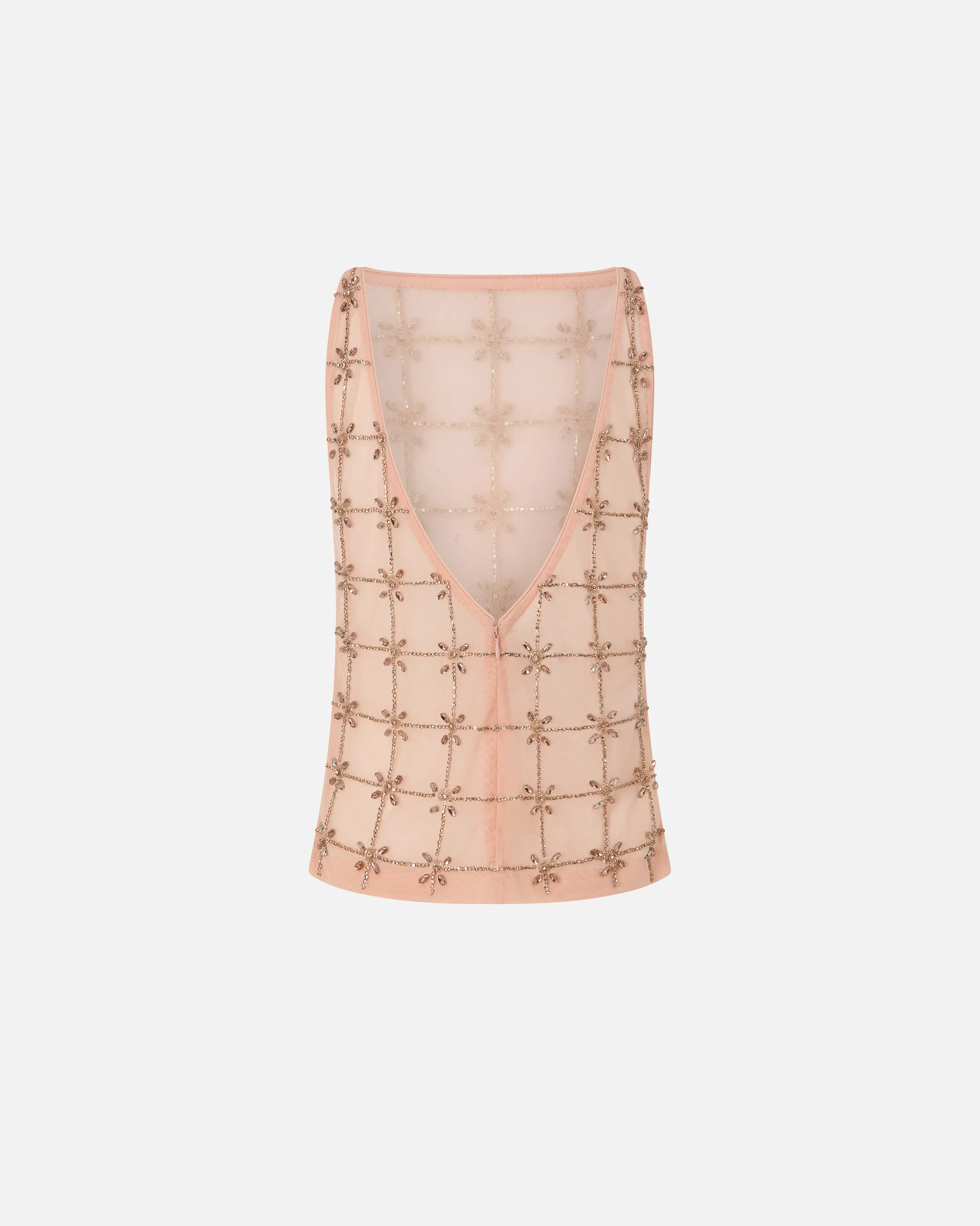 top smanicato in tulle con cristalli