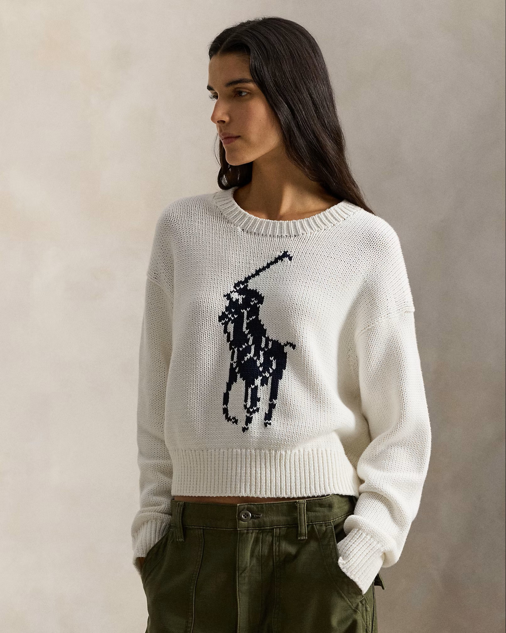 maglia a girocollo in cotone big pony