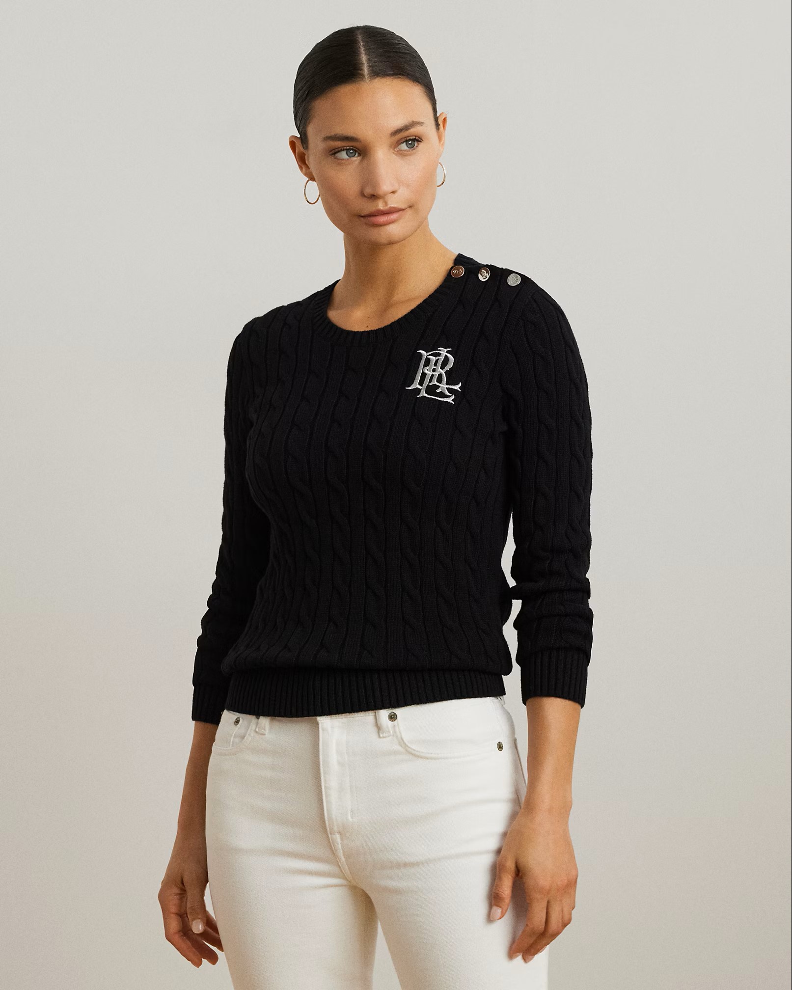 maglia a trecce con stemma ricamato