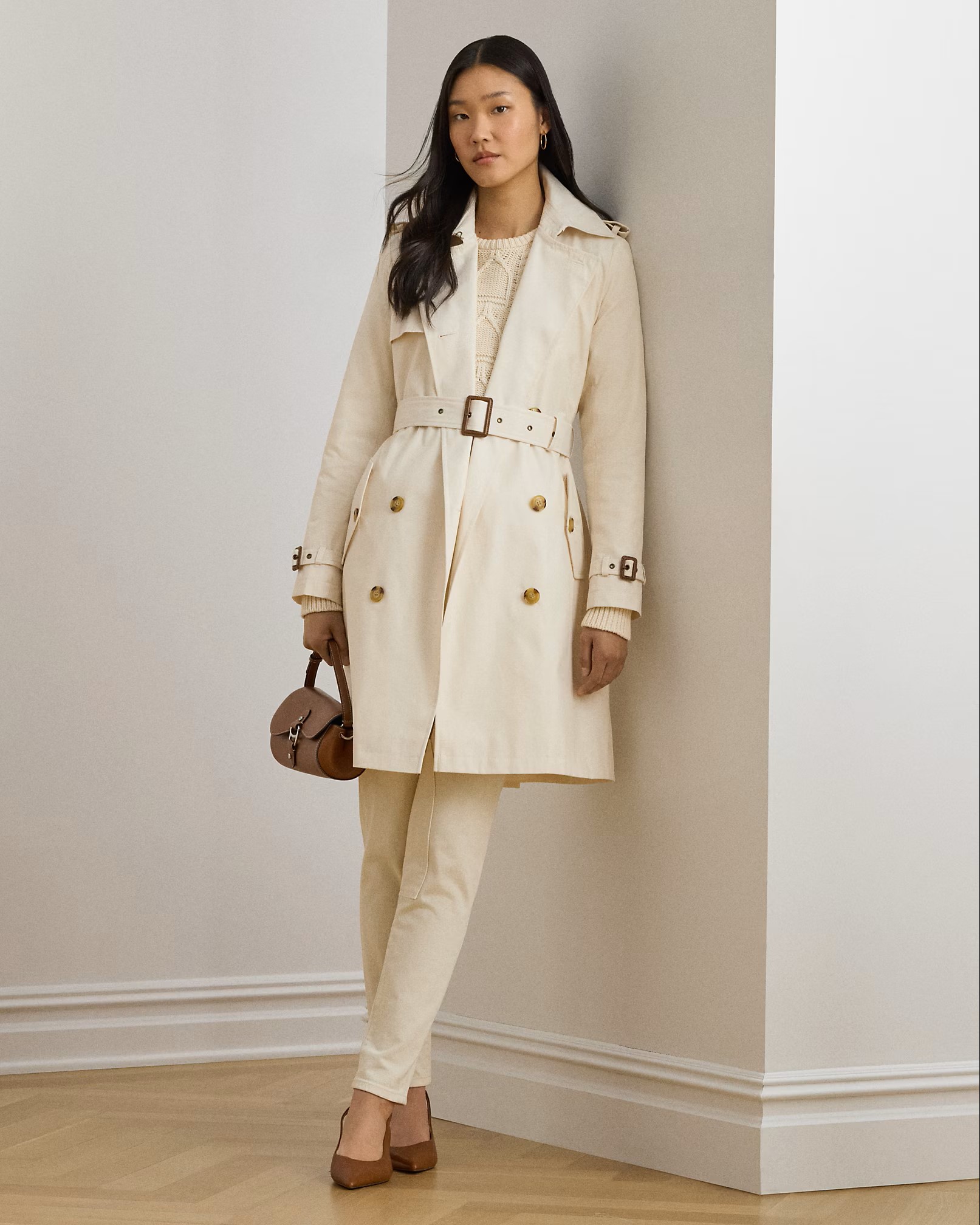 trench a doppio petto in misto cotone