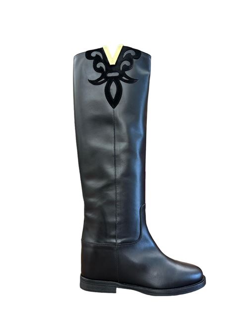 stivale in pelle con bordo V in camoscio
